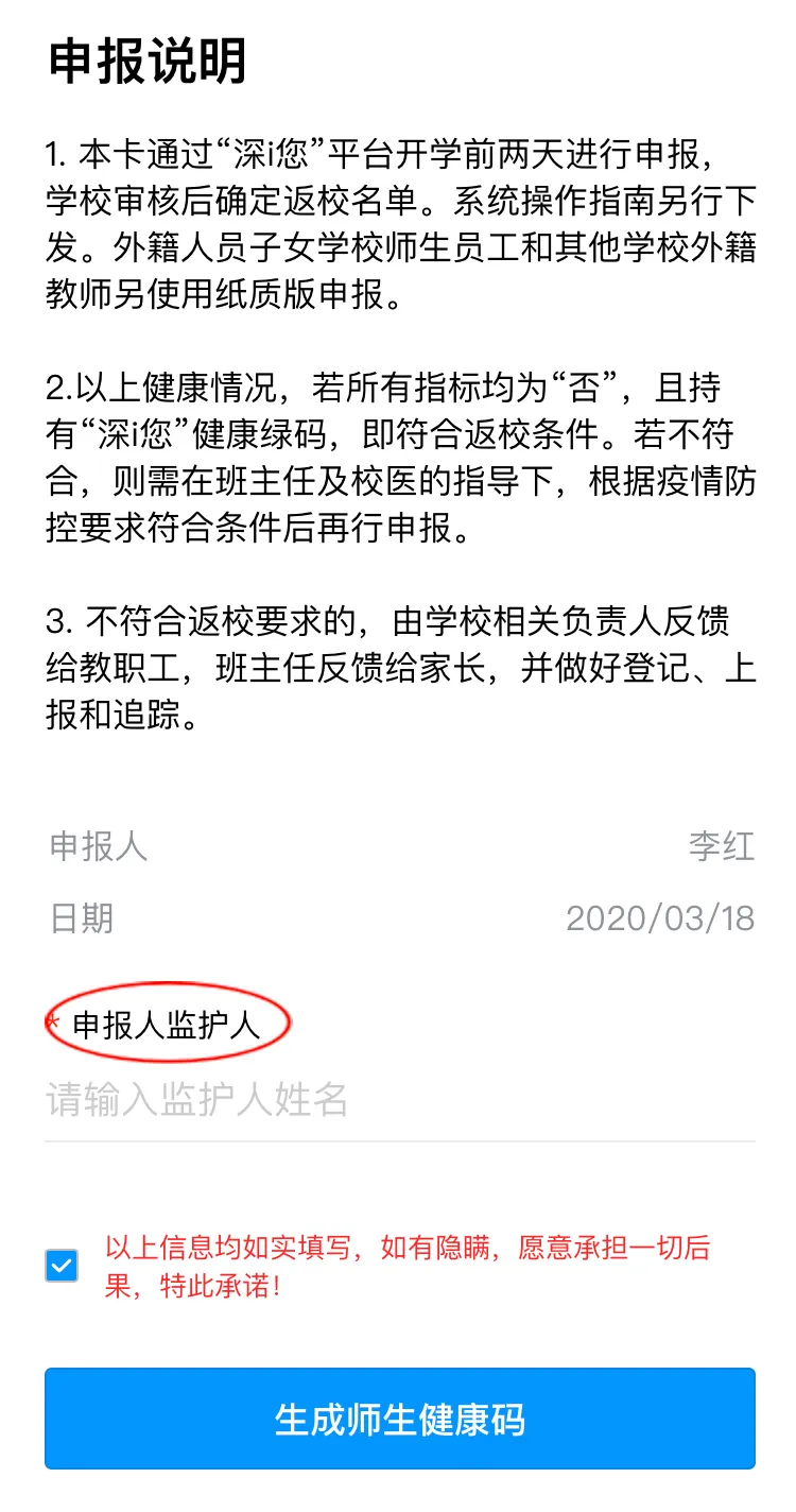 請根據(jù)實際情況完成健康信息申報,包括選擇家庭住址、申報健康情況、填寫監(jiān)護(hù)人姓名。