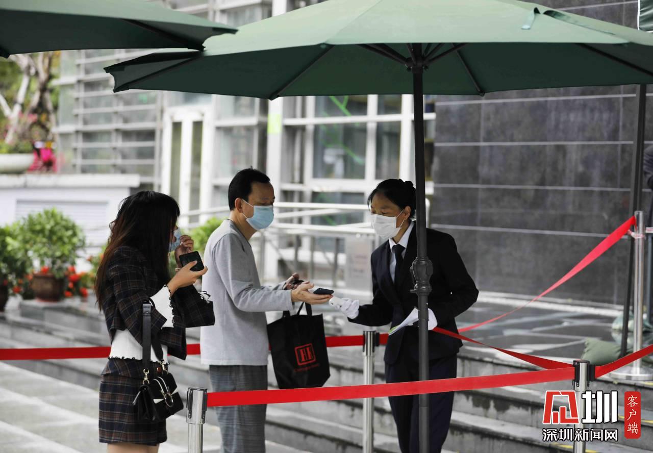 圖書(shū)館工作人員正在為入館市民測(cè)量體溫。