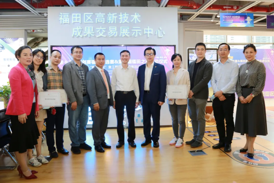 隨后,范坤與福田區(qū)科技創(chuàng)新局局長張忠暉等共同上臺啟動第十二屆深創(chuàng)賽福田預(yù)選賽暨第四屆“福田之星”大賽,同時為福田高科館授予“福田科技港灣”牌匾。