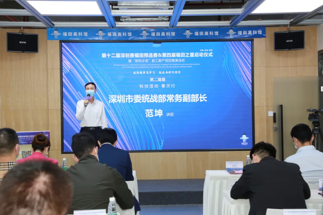 4月23日,由深圳市新聯(lián)會科技聯(lián)盟、福田高科館主辦的第十二屆深創(chuàng)賽福田預(yù)選賽&第四屆福田之星啟動儀式暨“新科沙龍”復(fù)工復(fù)產(chǎn)項(xiàng)目路演活動在福田高科館舉行,并進(jìn)行全程網(wǎng)絡(luò)同步直播。深圳市委統(tǒng)戰(zhàn)部常務(wù)副部長范坤出席活動。