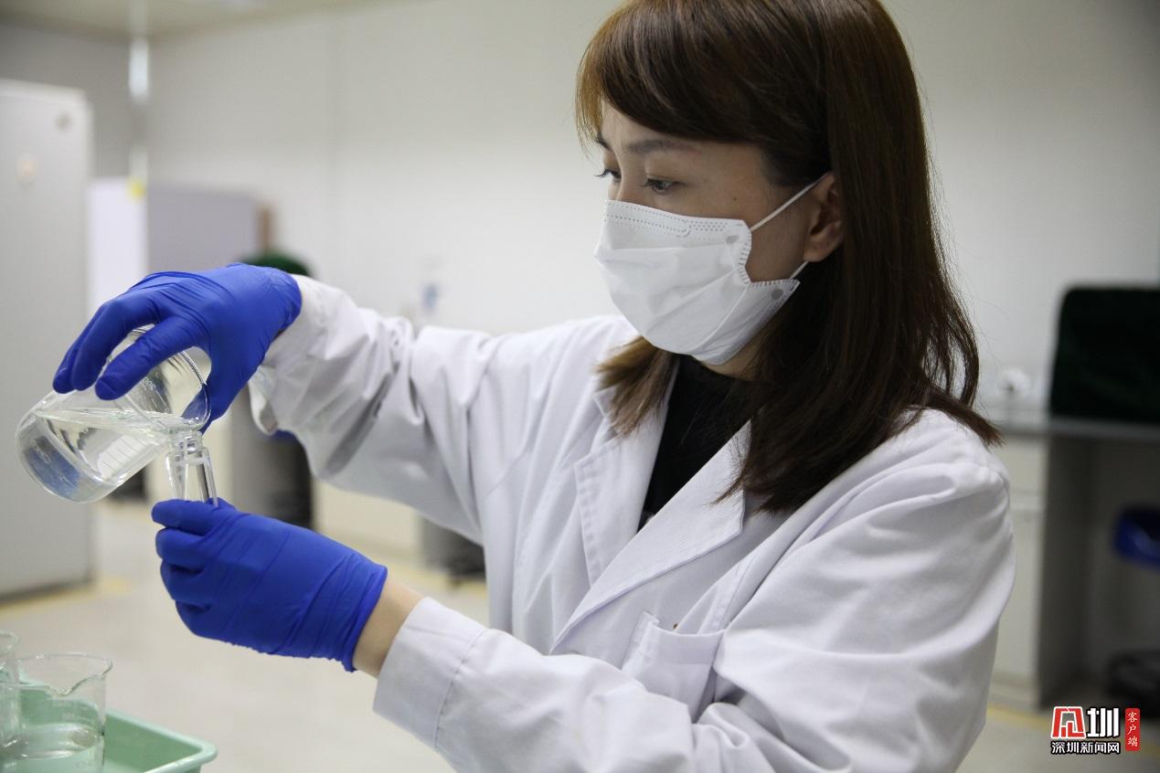 光明水務(wù)公司水質(zhì)化驗(yàn)員陳寶珠,正一絲不茍檢測(cè)水質(zhì)。