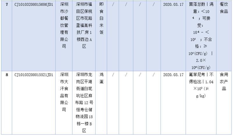 米飯、雞蛋也有問題?深圳食品安全抽檢8批次不合格