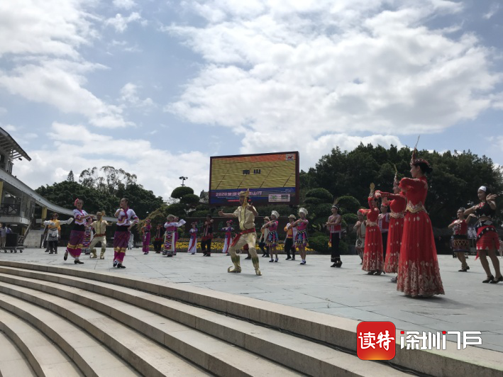“五十六個(gè)民族親親一家,就像百花園里盛開的花……”5月1日上午10點(diǎn)半,錦繡中華民俗村入口的廣場響起了《母親是中華》的歌聲,身著民族服飾的工作人員們載歌載舞迎接游客的到來,表演吸引了游客們駐足觀看、拍照。民俗村工作人員告訴記者,疫情期間暫停的開園迎賓表演在假期首日恢復(fù),“五一”期間景區(qū)還推出了“民俗游園會(huì)活動(dòng)”。