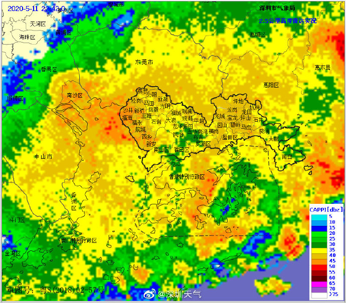 22時11分:強降雨已經(jīng)影響到鹽田和大鵬地區(qū),西部地區(qū)雖然雨勢減弱,但還將持續(xù)1-2小時,請大家睡前關好門窗。