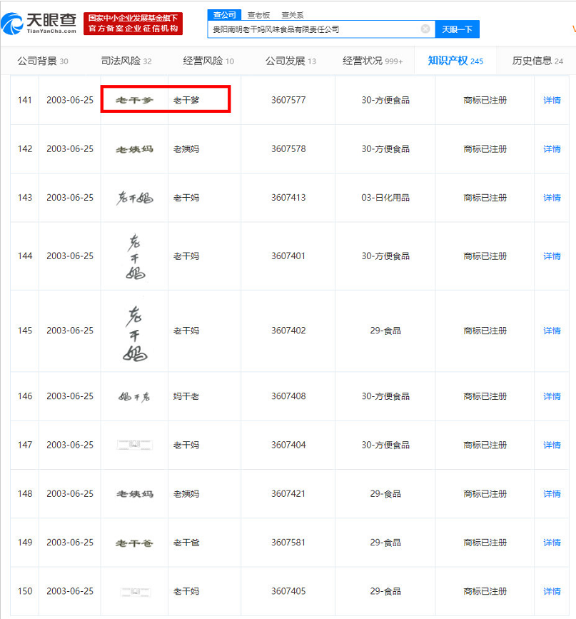當(dāng)時(shí)老干媽先走出貴州,紅遍大江南北,因受山寨困擾,便把“老干媽”“老千媽”“老干娘”、“老干爹”、“干兒子”……等商標(biāo)都給注冊(cè)了,老干爹無奈退出市場(chǎng)。