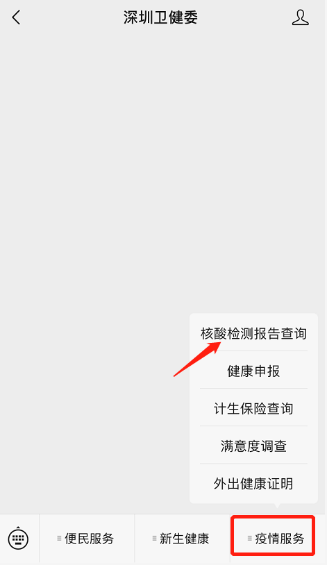 ②點擊“疫情服務(wù)”-“核酸檢測報告查詢”