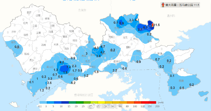 12時(shí)55分:目前全市大部分地區(qū)都在降雨,短時(shí)強(qiáng)降水主要出現(xiàn)在龍崗和坪山等地,大家暫時(shí)不要外出。