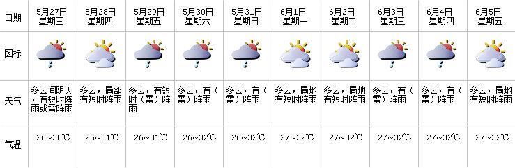 15時(shí)43分:【深圳市天氣提示】未來一周陽光陣雨相伴:27-31日多云,可見陽光,間中有(雷)陣雨,天氣日趨悶熱,27日氣溫26-30℃;展望6月1-2日多云,局地有短時(shí)陣雨。近期降雨頻繁,請(qǐng)繼續(xù)做好地面塌陷、滑坡等地質(zhì)災(zāi)害的防范。