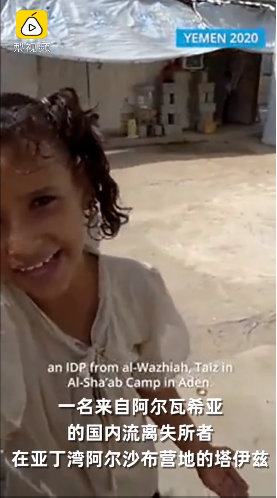 一名在也門Al-Sha'ab難民營生活的小姑娘
