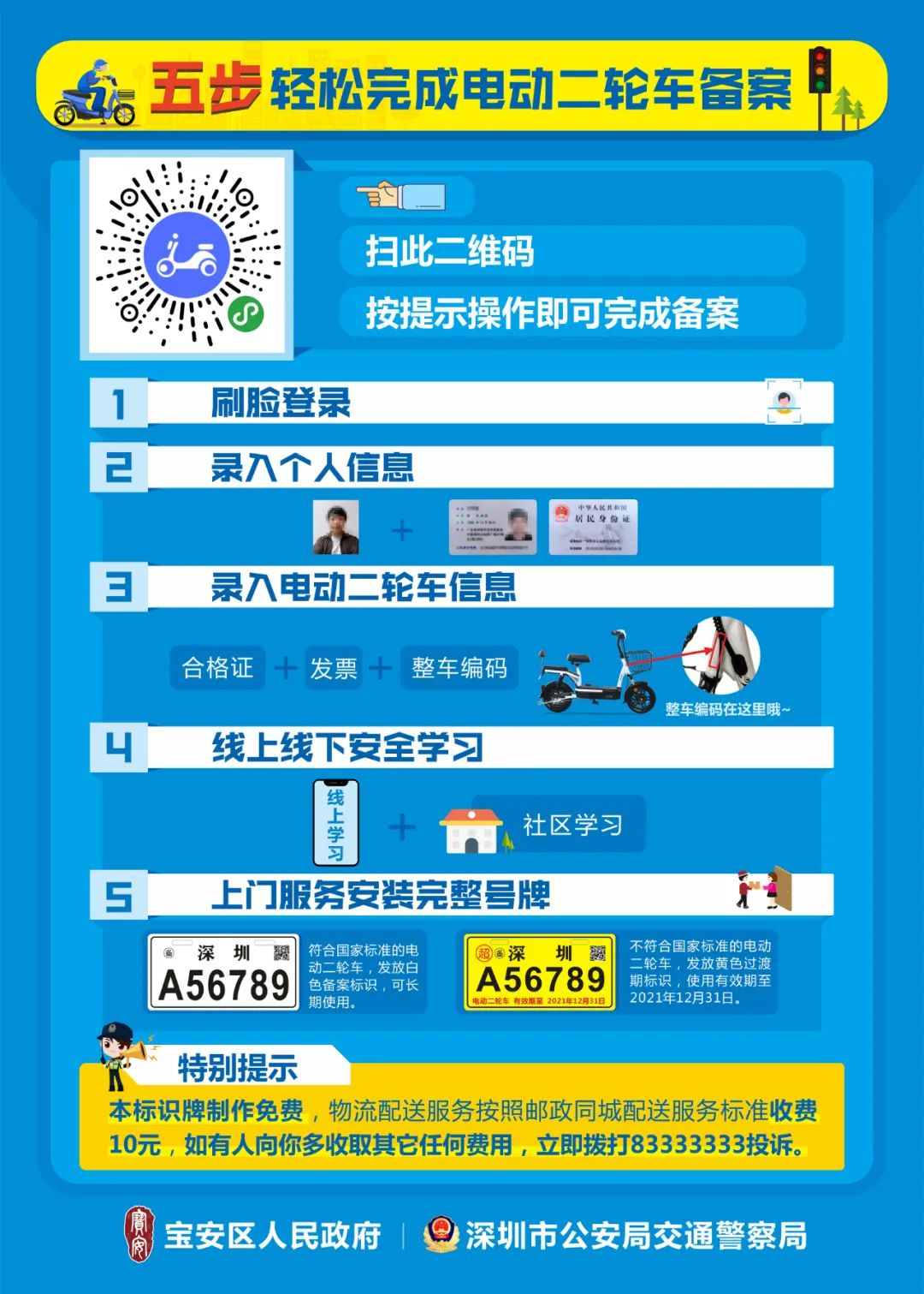 現(xiàn)階段,電動車備案試點工作僅在寶安區(qū)、光明區(qū)開展,一圖看懂電動車備案流程