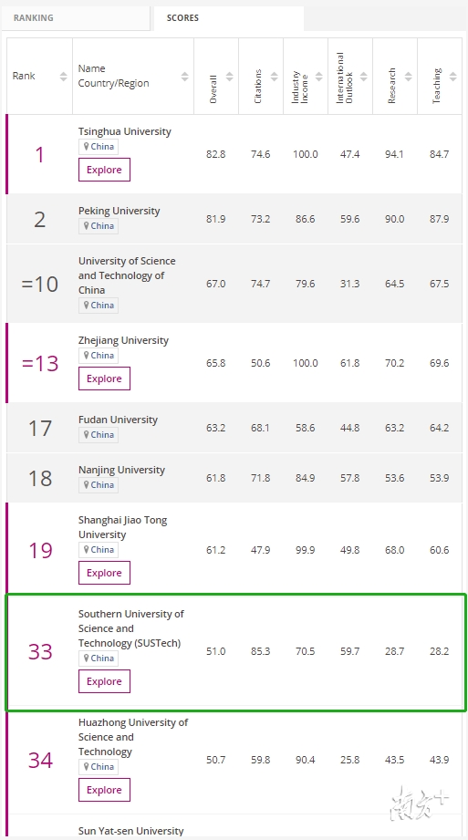 原標(biāo)題:泰晤士高等教育發(fā)布最新亞洲大學(xué)排名,深圳兩所高校表現(xiàn)亮眼