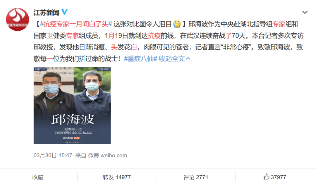 這是此前因“一月白頭”被網(wǎng)友熟知的國(guó)家衛(wèi)健委救治專(zhuān)家組成員、東南大學(xué)附屬中大醫(yī)院副院長(zhǎng)邱海波。