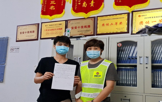 見圳客戶端·深圳新聞網(wǎng)2020年6月9日訊(深圳特區(qū)報記者 徐興東)6月9日早上,一位自稱劉先生的年輕人冒著滂沱大雨來到了西部公汽寶永車隊。一進辦公室,劉先生雙手捧著將親筆寫的一封感謝信呈給了隊助張喜鳳,并深有感觸地說道:“多災多難的父親有幸遇到乘務員鄭錄蓮的熱心幫助,并想方設(shè)法聯(lián)系上我。謝謝你們的成全,才讓我在父親節(jié)即將到來之時還能叫一聲爸爸,我將終生銘記諸位的大恩大德!”樸實無華的話語,感染了在場的每一個人,分明看出個個眼里都閃爍著晶瑩的喜悅淚花。