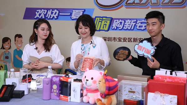 說到吃,有“寶安四寶”之一的合成號粽子和經典裝“寶安四寶”,“這個餅干少油少糖少鹽,是一款老少咸宜的休閑食品。”王曦推介合成號的產品時,還介紹了它的歷史故事。主播們現場試吃新安企業(yè)出品的佳沃牌藍莓時,王曦點評:“不是單純的甜,味道甜中帶點水果特有的酸味,是很純正的藍莓味?!币挤匠堑钠放泼朗场拔斡洝痹谥辈ラg推出了100元現金券只需75元優(yōu)惠購,趕緊約上親朋好友一起吃肉去!前海華僑城JW萬豪酒店的單人自助午餐打五折,158元就能買!茶閱世界在本次直播中推出了獲獎星級產品——三星大紅袍香高味醇,150g禮盒裝直播價188元、限量100盒。