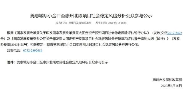 公示顯示,莞惠城際小金口至惠州北段是珠三角城際軌道交通網的莞惠城際線的延長線。