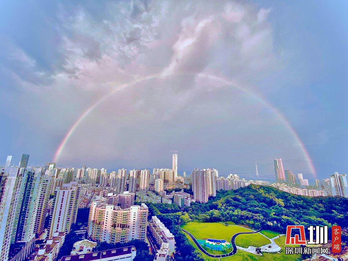 見圳客戶端?深圳新聞網(wǎng)2020年6月16日訊 今天(16日)傍晚,深圳雨后雙彩虹橫跨天際,景象絢麗唯美,引得路人紛紛駐足拍照。