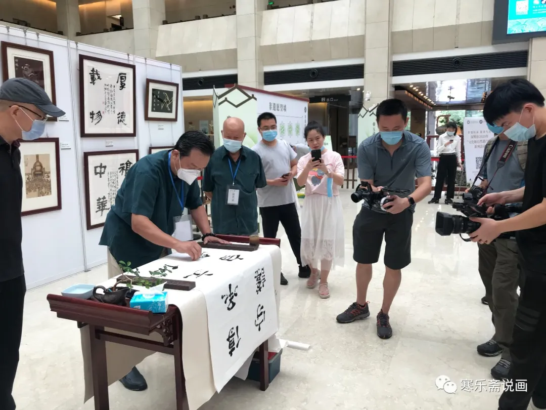 王和平在活動(dòng)現(xiàn)場揮指書寫“傳承文化瑰寶,守護(hù)自然之家”并接受主持人采訪。