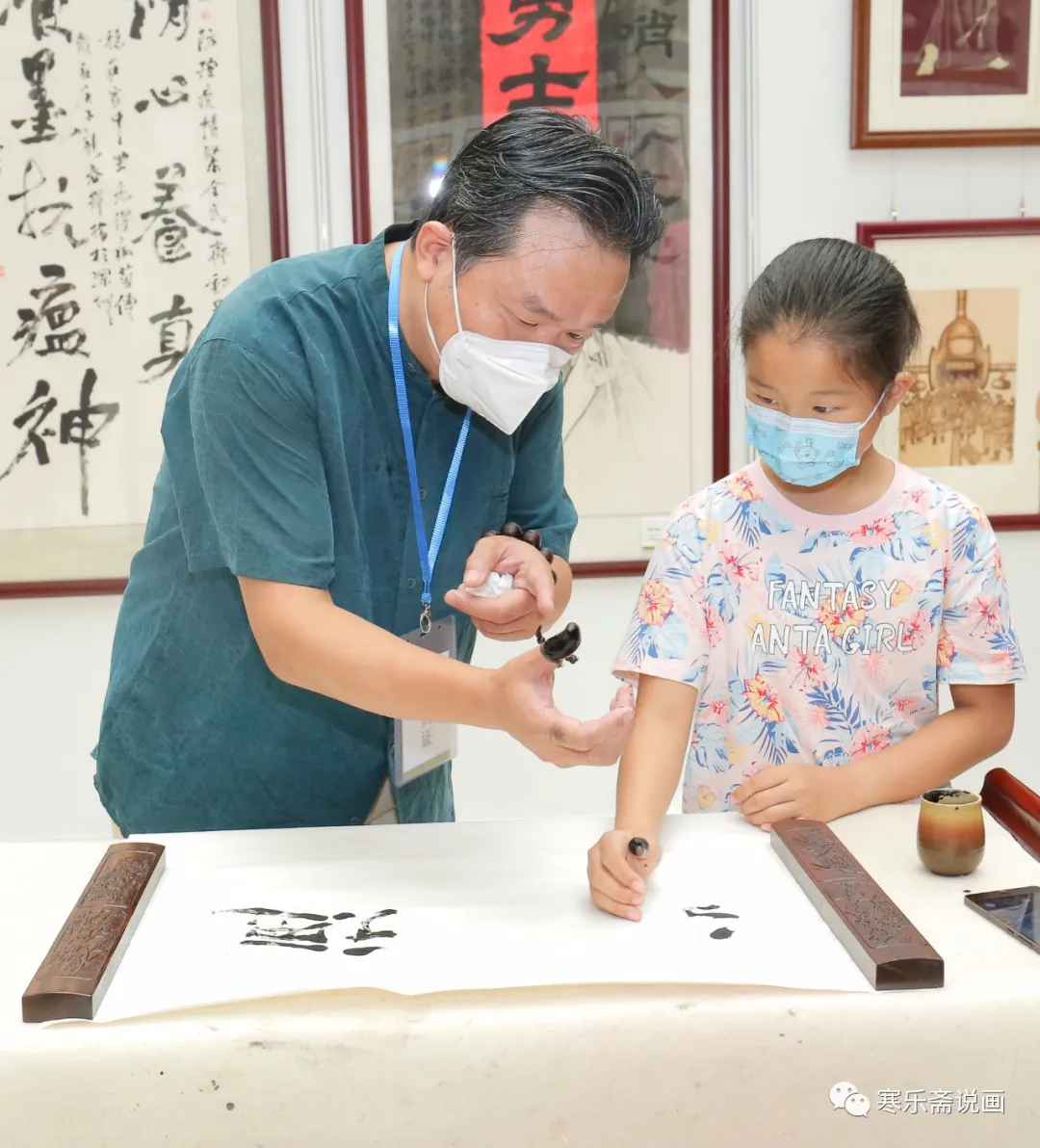 王和平在活動(dòng)現(xiàn)場教授孩子們用手指寫字的要領(lǐng)。