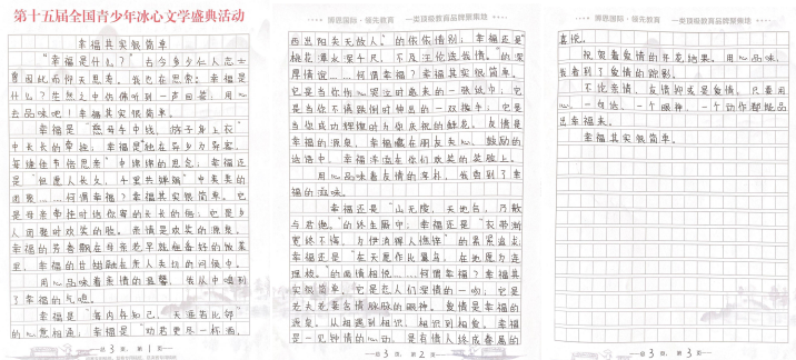 據(jù)活動組委會相關負責人介紹,“第十五屆全國青少年冰心文學盛典”以“2020文學之路,向上的力量”為主題,全程公益免費,設置了小學低年級組(1-3年級 )、小學高年級組(4-6年級 )、初中組、高中組、大學組、教師組、文學愛好者組等多個組別。值得注意的是,所有報名選手必須使用本次活動專用稿紙進行書寫創(chuàng)作。組委會將會根據(jù)選手報名提交的郵寄地址免費郵寄活動專用稿紙,每人僅限領取5張。選手完成手寫作品以后,將作品掃描或拍照發(fā)送到全國青少年冰心文學寫作指導中心深圳組委會指定郵箱szbxwx@126.com(冰心文學深圳)或gdbxwx@126.com(冰心文學廣東)。