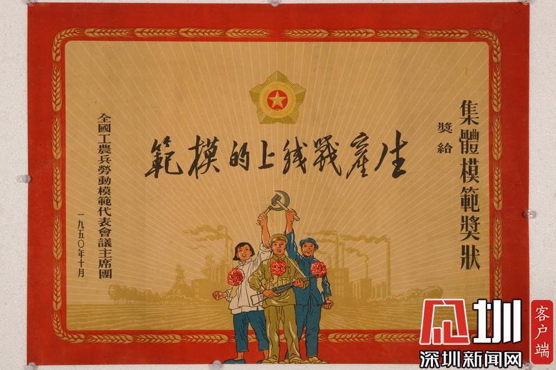 全國工農(nóng)兵勞動模范代表會議集體模范獎狀。