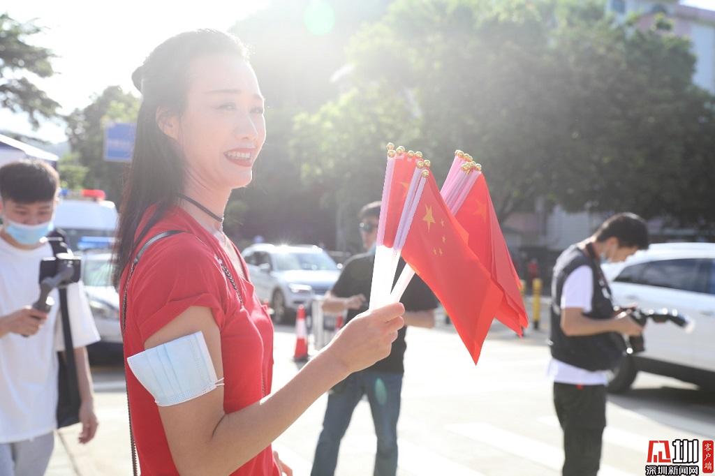一名家長(zhǎng)自費(fèi)購(gòu)買100個(gè)小國(guó)旗發(fā)放給考生,為他們加油助威。