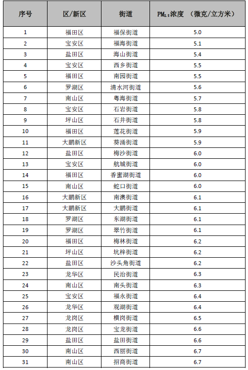 見圳客戶端·深圳新聞網(wǎng)2020年7月9日訊(見圳客戶端、深圳新聞網(wǎng)記者 葉梅 實習記者 徐樂釗)記者從深圳市生態(tài)環(huán)境局獲悉,2020年6月,全市74個街道PM2.5濃度在5.0-10.2微克/立方米之間,均值為7.0微克/立方米。