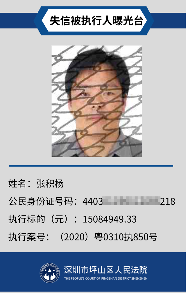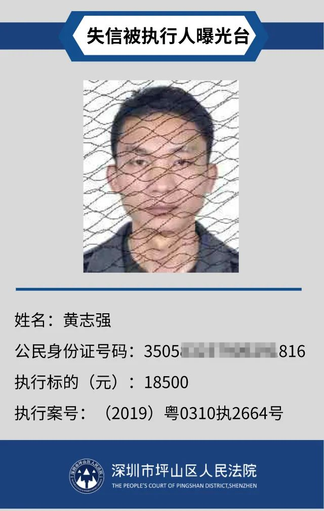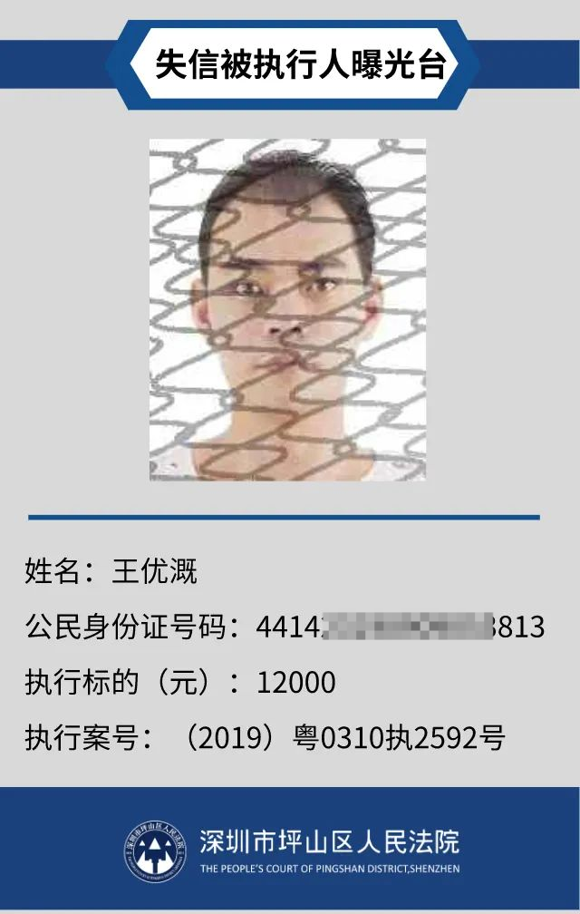 為督促被執(zhí)行人自覺(jué)履行生效法律文書(shū)確定的義務(wù),推進(jìn)社會(huì)誠(chéng)信體系建設(shè),深圳市坪山區(qū)人民法院根據(jù)《中華人民共和國(guó)民事訴訟法》第二百五十五條、《最高人民法院公布失信被執(zhí)行人名單信息若干規(guī)定》第一條和第七條之規(guī)定,現(xiàn)對(duì)31名失信被執(zhí)行人予以公布。名單信息根據(jù)案件結(jié)案情況及時(shí)更新,歡迎舉報(bào)失信被執(zhí)行人行蹤及財(cái)產(chǎn)線索,相關(guān)信息核實(shí)請(qǐng)聯(lián)系深圳市坪山區(qū)人民法院執(zhí)行局。