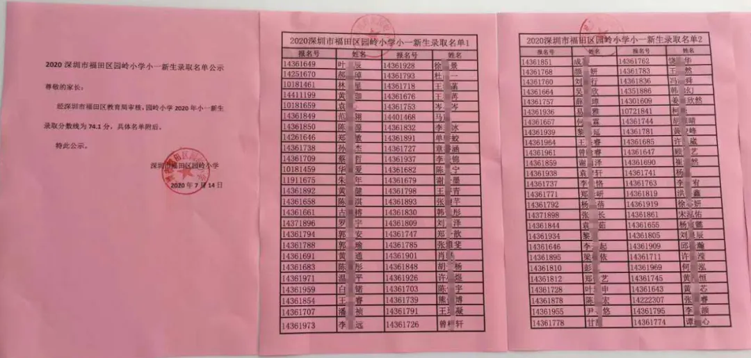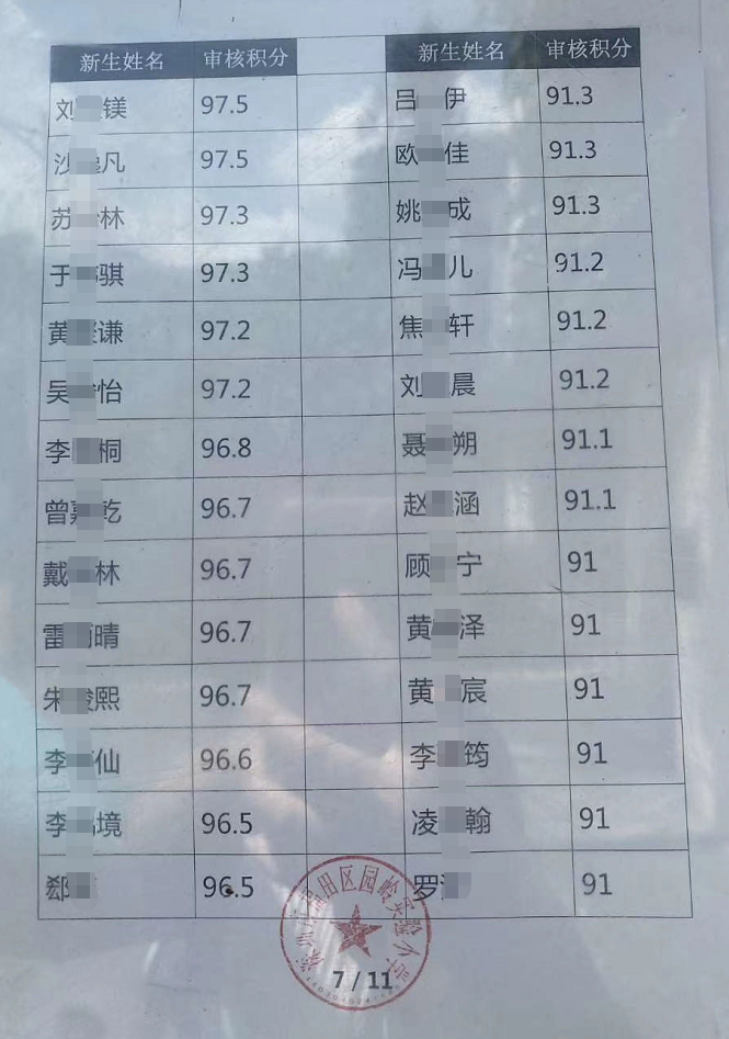 2020年福田區(qū)公辦小一新生錄取名單來(lái)了,部分學(xué)校最低錄取積分曝光