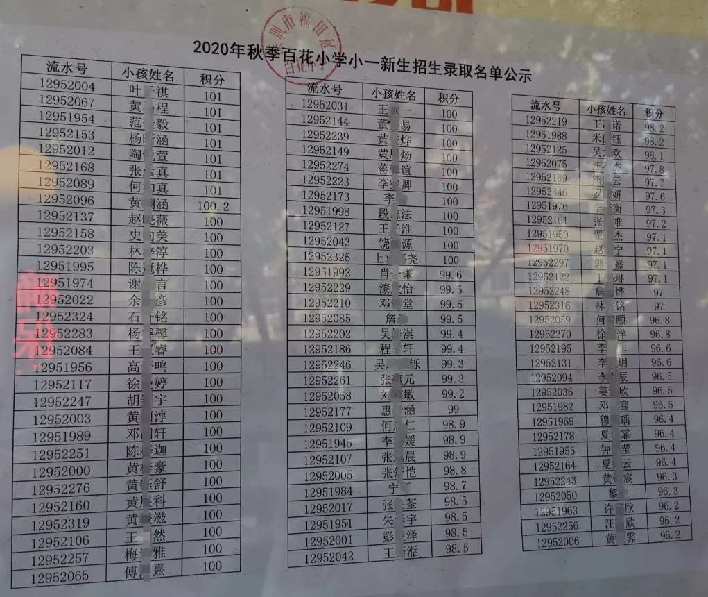 2020年福田區(qū)公辦小一新生錄取名單來了,部分學校最低錄取積分曝光