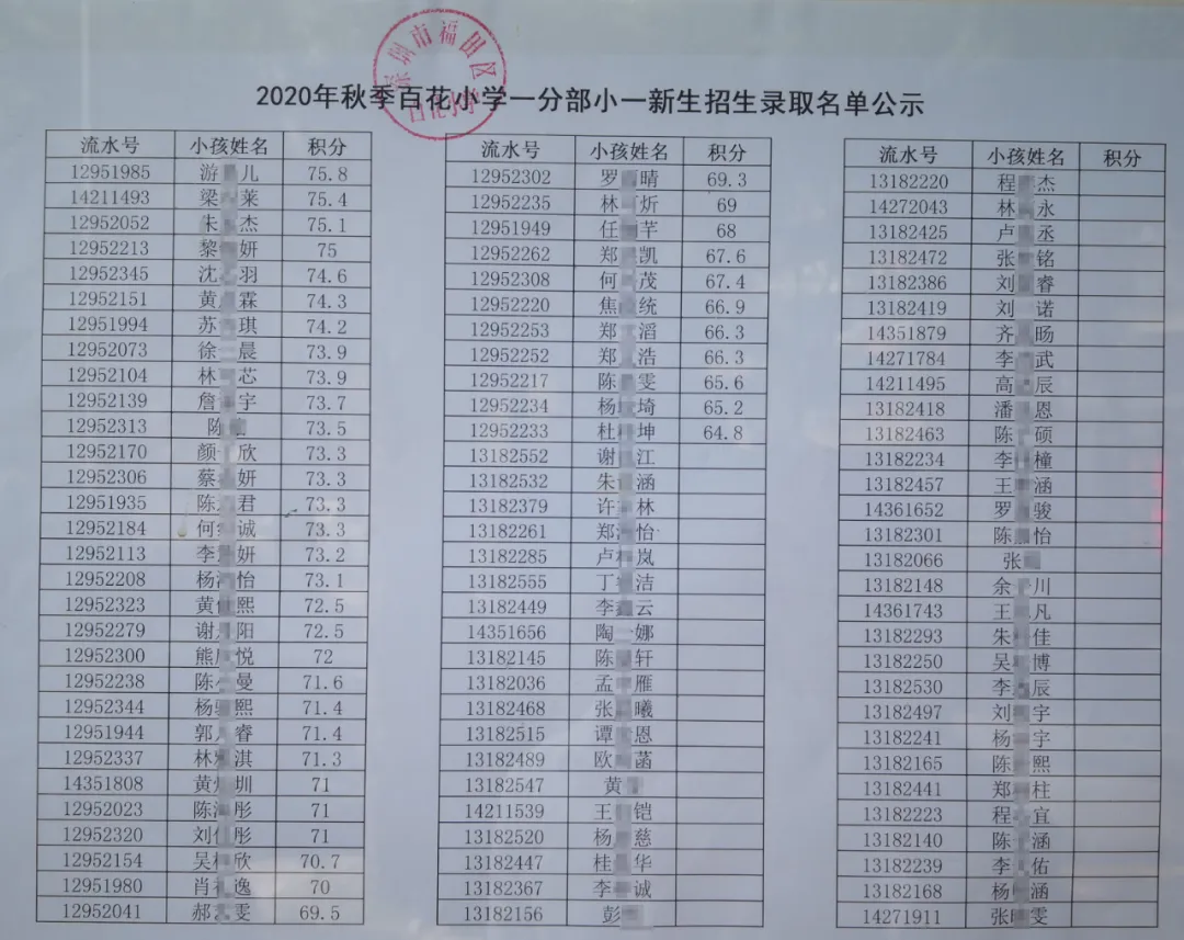 2020年福田區(qū)公辦小一新生錄取名單來(lái)了,部分學(xué)校最低錄取積分曝光