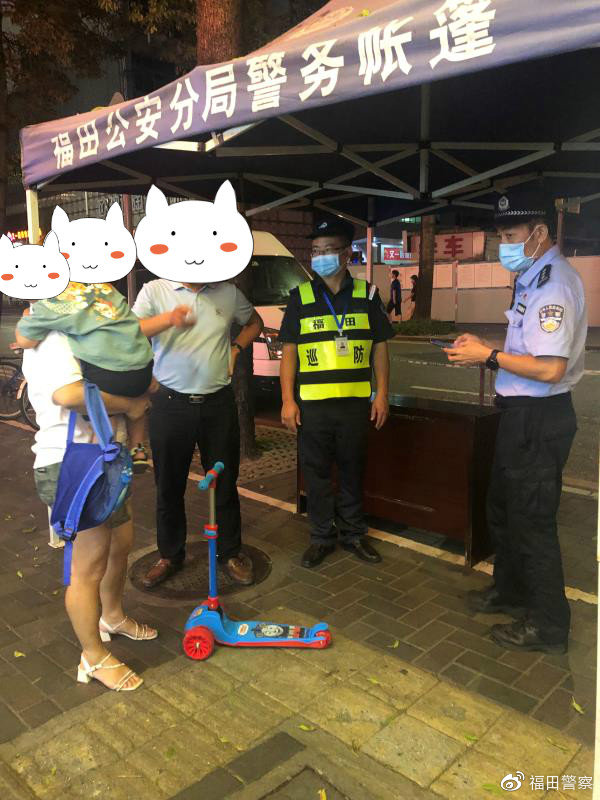 近日,深圳市公安局福田分局八卦嶺派出所巡段民警劉臣利剛處理完一起糾紛,就接到派出所前臺(tái)指令稱:在驛站附近有一名走失小孩需要幫助。接到指令后,巡段民警劉臣利立即前往現(xiàn)場。