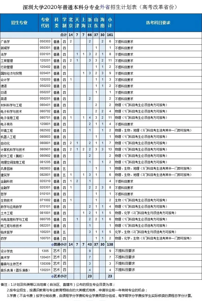 深圳大學2020年面向全國29個省(自治區(qū)、直轄市)招生,招生總規(guī)模保持不變,總計劃為6750人。增加天津這1個招生省份;增加廣東省外招生計劃;增加金融科技、機器人工程、學前教育(師范)3個招生專業(yè);增加軟件工程(騰班)、心理學(師范)2個專業(yè)方向。