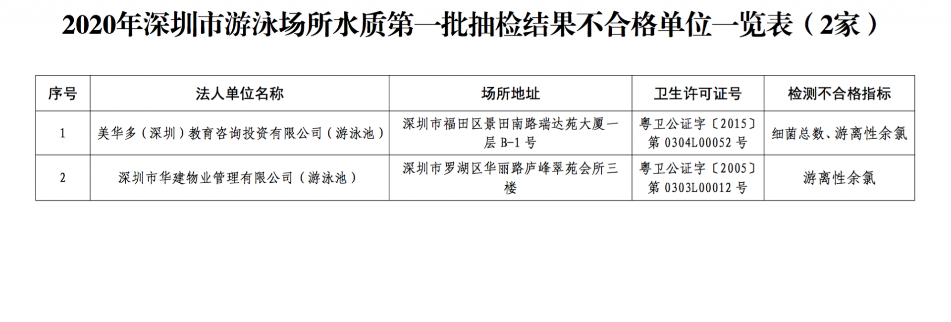 原標題 游泳去?深圳第一批游泳場所水質(zhì)抽檢結(jié)果:這2家不合格