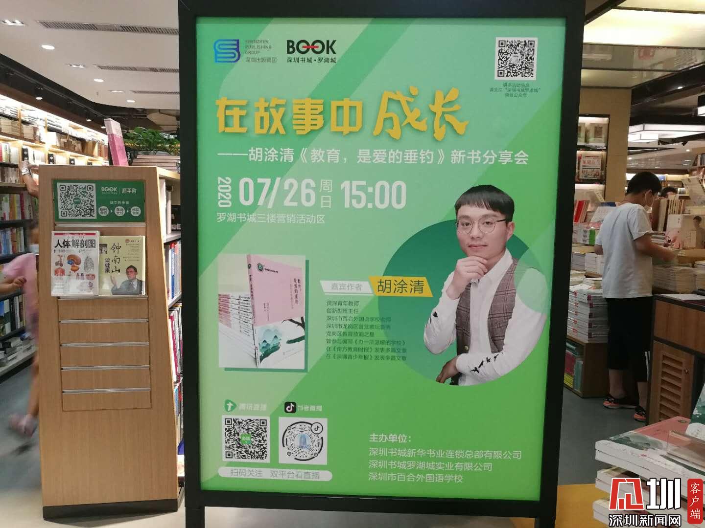 見圳客戶端·深圳新聞網(wǎng)2020年7月27日訊(記者 張玲 實習生 王舒蕾)在教育工作者的眼中,教育是什么樣的?7月26日下午3點,深圳市百合外國語學校胡涂清老師攜新書《教育,是愛的垂釣》做客羅湖書城,與讀者朋友們分享了任教經(jīng)歷的暖心故事和獨到見解。