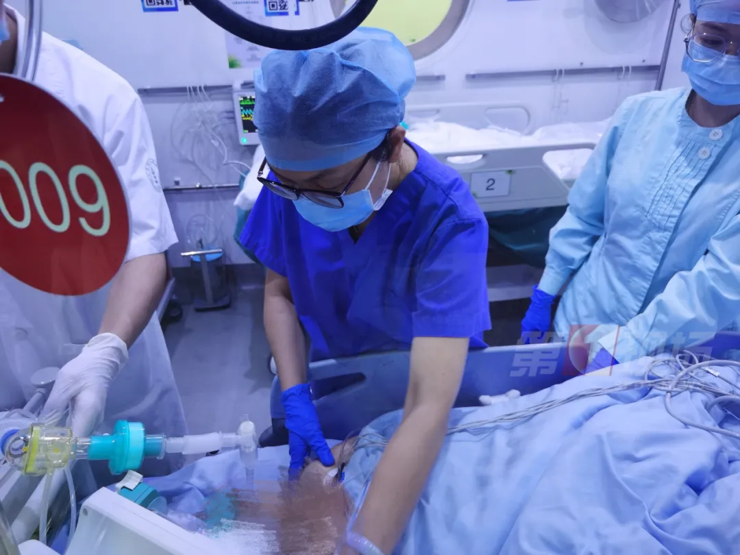 當(dāng)時(shí)人是神智不清的,有頻繁的抽搐,考慮這個(gè)頻繁抽搐,還是跟她心跳驟停之后,大腦缺血、缺氧狀態(tài)有關(guān)系。我們樓下?lián)尵仁?,很快就給她一個(gè)評估全身的狀態(tài),再一個(gè)就是第一時(shí)間,我們就給她緊急安排了高壓氧的治療。
