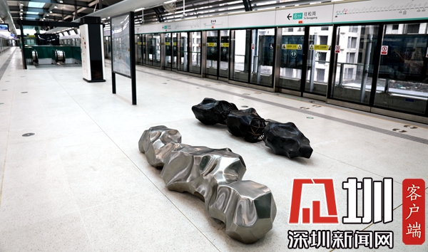 該站文化藝術品采用金屬鍛造而成,作品選用中國傳統(tǒng)經(jīng)典的“景石”造形,進行解構、重組的藝術處理。