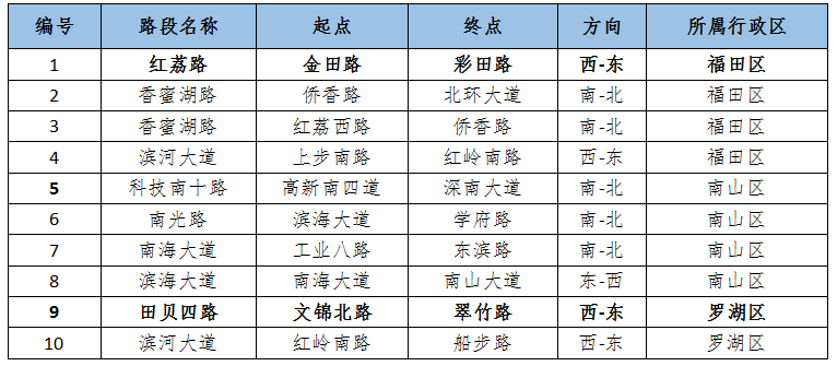預(yù)計臺風(fēng)季工作日晚高峰時段十大易堵路段主要集中在福田、南山、羅湖區(qū),其中,福田區(qū)紅荔路(金田路-彩田路)、羅湖區(qū)田貝四路(文錦北路-翠竹路)等路段受降雨天氣影響較大,預(yù)計晚高峰時段路段通行時長較普通工作日多花費(fèi)30%-60%,道路運(yùn)行有所惡化。