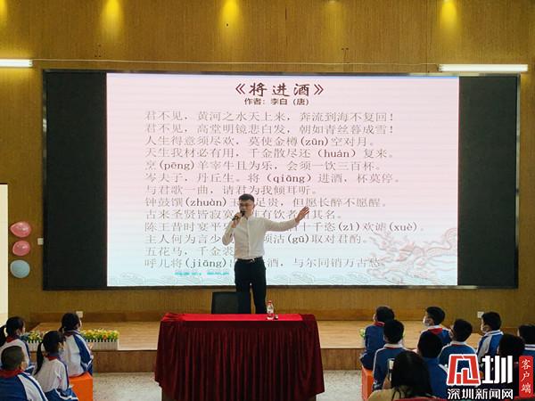 深圳新聞網(wǎng)訊(深圳新聞網(wǎng)記者 彭桂紅 通訊員 梁文雅)為進一步弘揚中華優(yōu)秀傳統(tǒng)文化,近日,深圳市錦田小學特邀青年文化學者、深圳市百姓學習之星、深圳市公益閱讀推廣人、深圳市首屆家園文化文學會會長晉玉東為廣大師生開展了一場別開生面的“中國古典詩詞朗誦藝術(shù)鑒賞——兼談如何朗誦好一首詩”公益文化講座。羅湖區(qū)錦田小學德弘校區(qū)副校長劉向陽、羅湖區(qū)錦田小學德弘校區(qū)主任張俊暉、羅湖區(qū)未來學校主任謝淑紅、德弘二年級家委代表以及語文科組老師,一同參加。活動由班主任梁文雅和學生劉沛東、張家琪共同主持,近200名學生參加了講座活動。整場講座師生熱情高漲,主講嘉賓深入淺出、娓娓道來,參與學生思維活躍、表現(xiàn)積極,帶動校園形成了學習詩詞文化的良好氛圍。