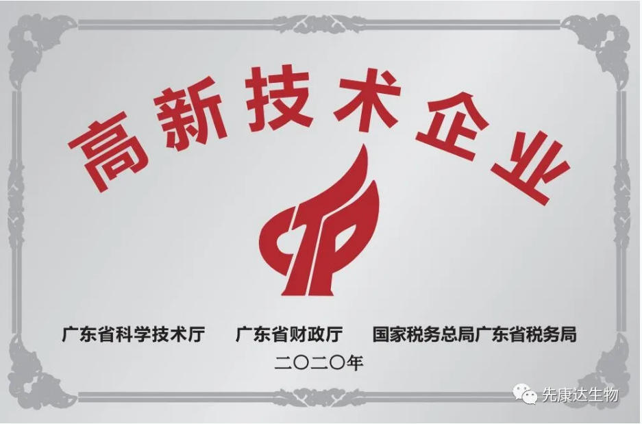 近日,廣東省科技廳公布廣東省2020年度第一批國(guó)家高新技術(shù)企業(yè)名單,廣東先康達(dá)生物科技有限公司赫然名列其中,這標(biāo)志著先康達(dá)生物邁上一個(gè)更大的臺(tái)階。