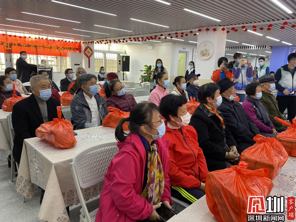 時值冬至佳節(jié),陽光和煦,羅湖區(qū)副區(qū)長左金平向在場的各位老年人獻上節(jié)日的祝福,并向他們分發(fā)冬至禮包,禮包內(nèi)有雞蛋、食用油等日常用品,收到禮品的老人們臉上洋溢著幸福的笑容。