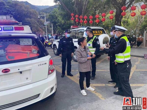 得知該情況后,現(xiàn)場隊員一方面穩(wěn)定老人家情緒,另一方面向其了解家人的基本情況。據(jù)老人描述,當天她與女兒和女婿兩人來到梧桐山游玩,結果不小心走散。而老人身上并沒有攜帶相關證件和通訊工具,也無法提供家人具體聯(lián)系方式和證件號碼。由于當時游人眾多,為確保老人安全,盡快幫助其找回走散的家人,現(xiàn)場隊員立即與交警隊指揮中心反映情況,并聯(lián)系東湖派出所協(xié)同開展調(diào)查。在執(zhí)勤交警與派出所警力的緊急幫助下,老人懸著的心也總算放下,并對隊員的熱心幫助表示衷心感謝。