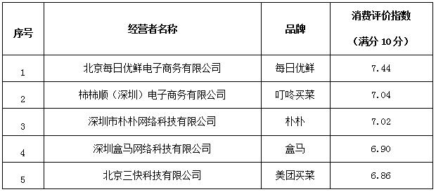 發(fā)布深圳地區(qū)生鮮電商行業(yè)消費(fèi)評價(jià)指數(shù)排行榜