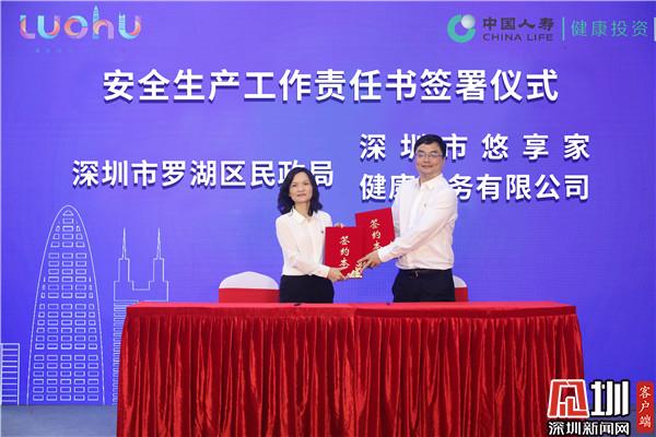 在開業(yè)儀式上,羅湖區(qū)民政局與國壽·悠享家健康護老中心簽訂了安全生產(chǎn)、消防工作責任書,為保障入住長者安全、關(guān)注長者需求層層壓實安全責任。