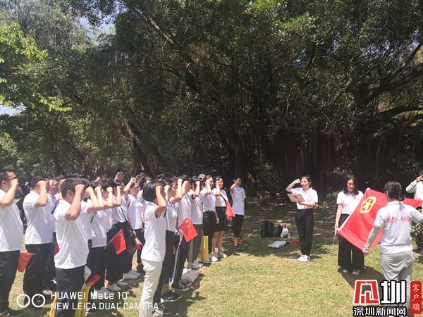 在鄧小平銅像廣場,大家精神抖擻、意氣風發(fā),手持飄揚的旗幟,再一次舉起右手,莊嚴宣誓。