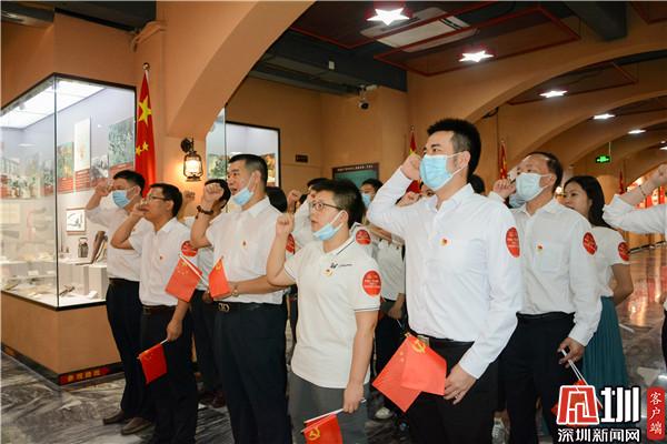 參觀活動(dòng)結(jié)束后,全體成員進(jìn)行了重溫入黨誓詞環(huán)節(jié)。在鮮紅的黨旗下,黨員們舉起右拳,在羅湖區(qū)委宣傳部二級(jí)調(diào)研員李文威的帶領(lǐng)下莊嚴(yán)宣誓,大家仿佛又看到了自己第一次站在莊嚴(yán)的黨旗下宣誓的樣子:“我志愿加入中國(guó)共產(chǎn)黨,擁護(hù)黨的綱領(lǐng),遵守黨的章程……”一聲聲鏗鏘有力的入黨誓詞在博物館中回響。