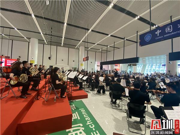 見圳客戶端·深圳新聞網(wǎng)5月11日訊(記者 劉嘉敏 通訊員 黎發(fā)奮 馬唯彬)2021年5月10日,“聆聽紅色經(jīng)典 傳承革命星火” 2021深圳交響樂團(tuán)蓮塘邊檢站音樂會(huì)在深圳蓮塘口岸舉行。本場(chǎng)音樂會(huì)由蓮塘出入境邊防檢查站、深圳交響樂團(tuán)聯(lián)合主辦,深圳羅湖外語(yǔ)初中學(xué)校協(xié)辦,由國(guó)家一級(jí)指揮、天津交響樂團(tuán)團(tuán)長(zhǎng)董俊杰先生執(zhí)棒指揮。
