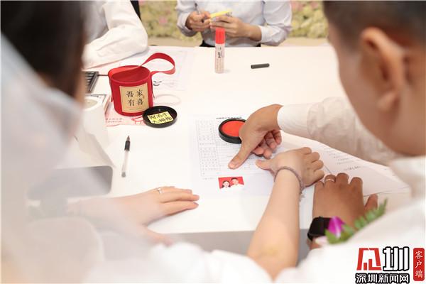 新郎身穿白襯衣,新娘身著潔白婚紗,他們十指緊扣,笑容甜蜜,在眾人的見(jiàn)證下交宣讀誓言、深情擁吻,許下一生愛(ài)的承諾。羅湖區(qū)副區(qū)長(zhǎng)馮健和羅湖區(qū)民政局局長(zhǎng)楊文秀作為特邀頒證師,分別為20對(duì)新人頒發(fā)結(jié)婚證書(shū)并送上誠(chéng)摯的祝福,新人們的歡聲笑語(yǔ)充滿了婚姻登記處的每個(gè)角落,處處洋溢著幸福與喜悅。通過(guò)集體頒證莊嚴(yán)而神圣的儀式感,向新人們強(qiáng)調(diào)法律的嚴(yán)肅性和婚姻的莊嚴(yán)性,讓他們銘記婚姻家庭蘊(yùn)含的責(zé)任與擔(dān)當(dāng),同時(shí)倡導(dǎo)廣大市民樹(shù)立“重登記、強(qiáng)責(zé)任、崇節(jié)儉”的婚俗新風(fēng)意識(shí),形成婚事新辦、簡(jiǎn)辦的文明新風(fēng)尚。