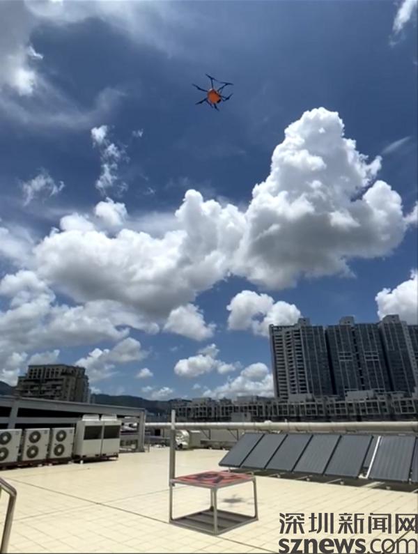 無人機降落在羅湖醫(yī)院集團醫(yī)學(xué)檢驗中心停機坪。