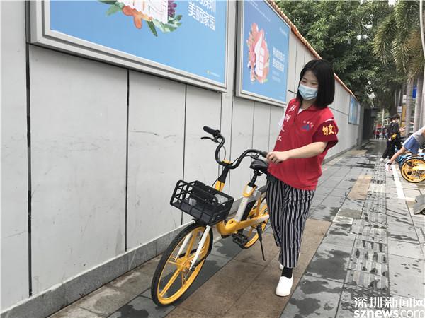 老圍社區(qū)共有55個共享單車點位,1500輛共享單車,每天有4、5千人次使用,利用率極高,同時也就存在亂擺放的情況?;顒赢?dāng)天,志愿者們兩三人一組,對55個點位發(fā)起了攻擊,成人志愿者擺放單車,小小志愿者向騎單車的人發(fā)放《深圳市民文明手冊》,并及時提醒市民文明用車,文明停放。