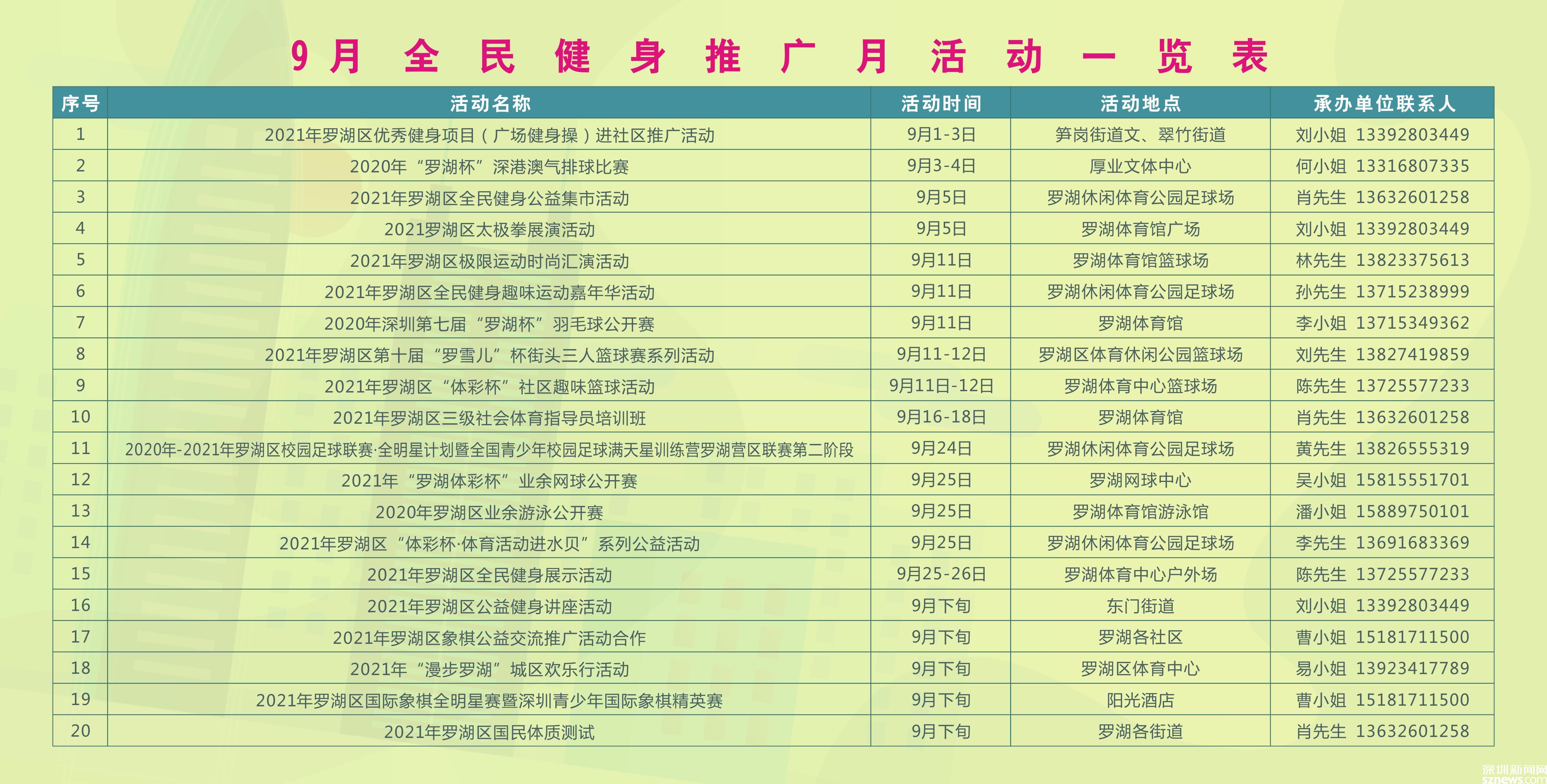 據(jù)了解,羅湖區(qū)將在9月全民健身推廣月組織承辦極限運動時尚匯演、全民健身趣味運動嘉年華、街頭三人籃球賽、羽毛球公開賽等共二十項全民健身活動,市民可以在羅湖區(qū)文體場館“一鍵預(yù)約”平臺及時了解相關(guān)活動資訊,還可通過“報名”版塊參與其中。同時為了鼓勵更多的市民群眾積極參與全民健身,羅湖區(qū)計劃在全民健身推廣月于 “一鍵預(yù)約”平臺推出“400萬元體育消費券”這一重磅福利,從2021年9月至12月向市民派發(fā)分15元、30元、100元三種面值的消費券,每周發(fā)放,有效期兩周,市民通過羅湖區(qū)文體場館“一鍵預(yù)約”平臺可以搶券,體育消費券適用于羅湖體育館、羅湖體育中心戶外運動場、羅湖網(wǎng)球中心、羅湖室內(nèi)網(wǎng)球館、羅湖體育休閑公園的運動場租、門票、培訓(xùn)及體育用品等,為市民送來實實在在的惠民體育福利,讓市民可以任意選擇自己喜愛的運動項目進(jìn)行消費。